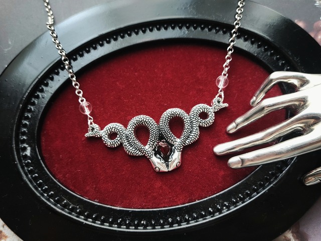 【魔女の心臓のネックレス】 ― 永遠に閉じ込められた鼓動 ― 二匹の蛇に守られた、魔女の心臓のネックレス。 ○サイズ 全長:約45cm ○素材 レジン/合金