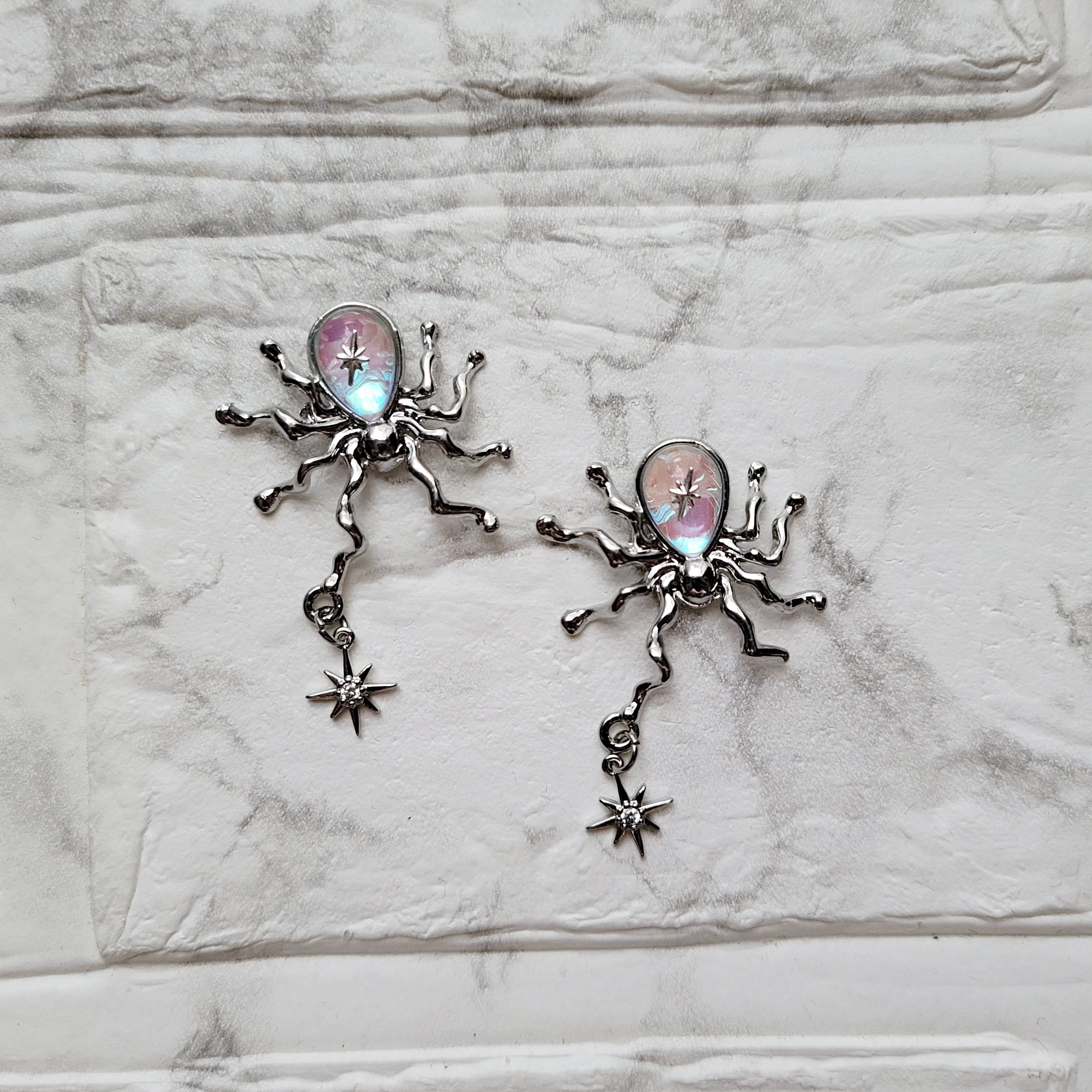 糸に絡まった流れ星を、地上へ降らせる蜘蛛をイメージした耳飾り。